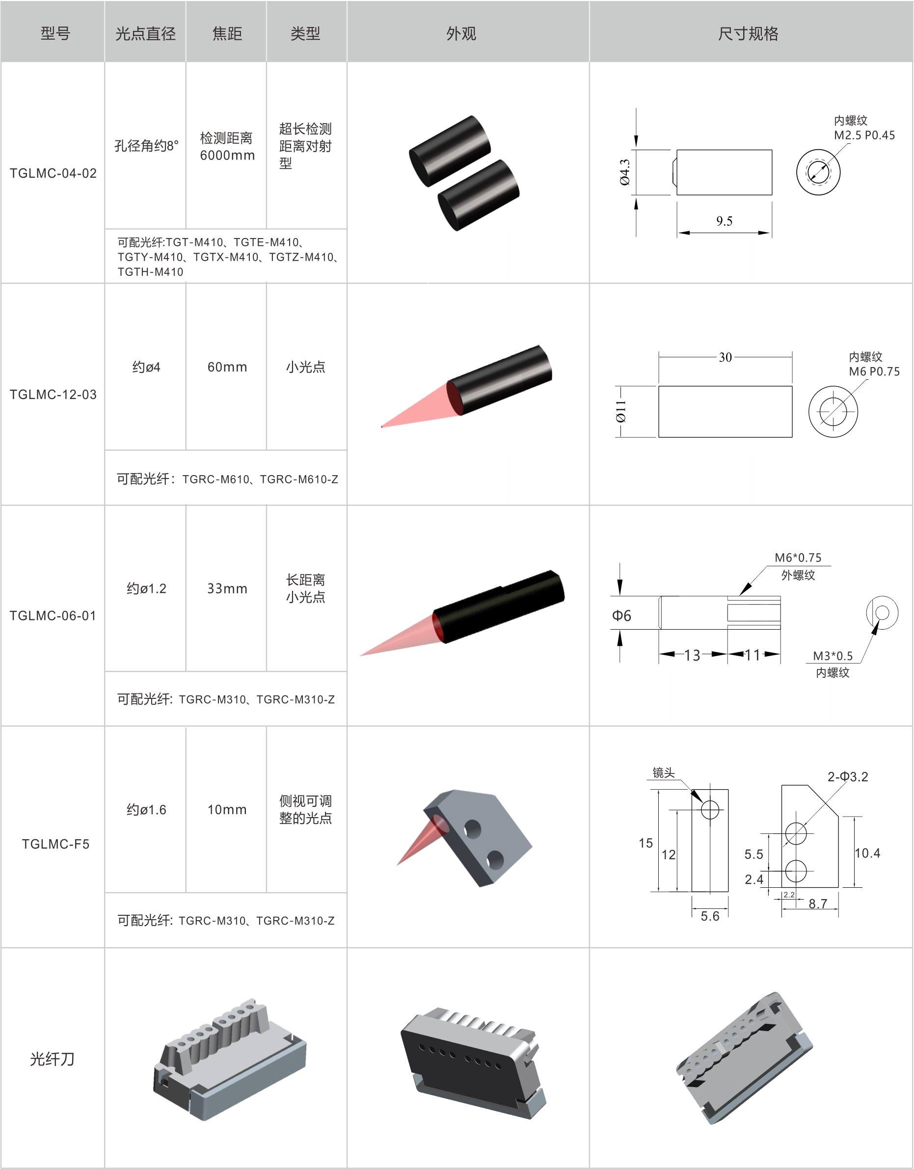 平行光型聚光鏡:這種聚光鏡能夠?qū)⑷肷涔饩€轉(zhuǎn)換為平行光線,并導(dǎo)向光纖傳感器。它適用于需要檢測(cè)較大面積或遠(yuǎn)距離目標(biāo)的場(chǎng)景。
