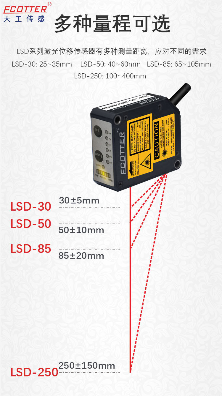 ECOTTER 激光位移傳感器LSD系列 有四種量程可選