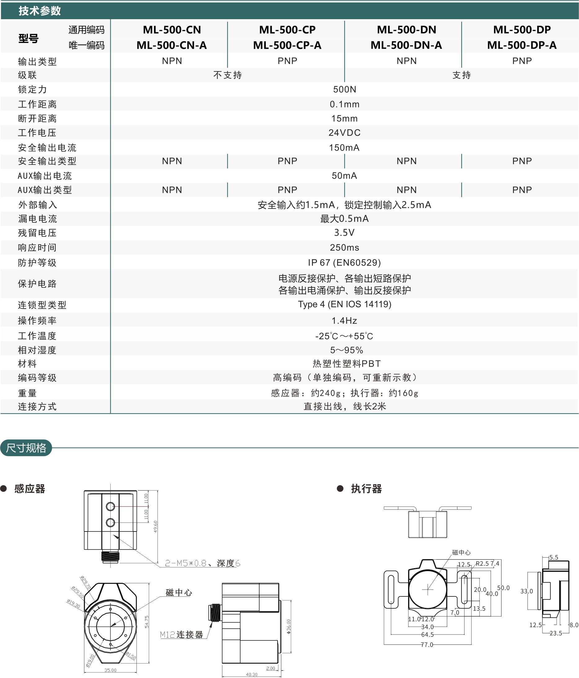 ML-500系列鎖定力可達(dá)500N,具有抗干擾、防塵防水、耐腐蝕、高負(fù)載,適用于高安全性和惡劣工況需求。