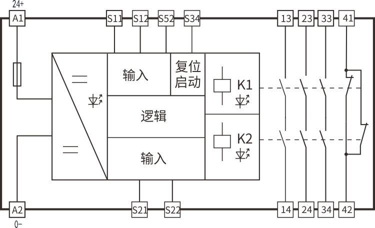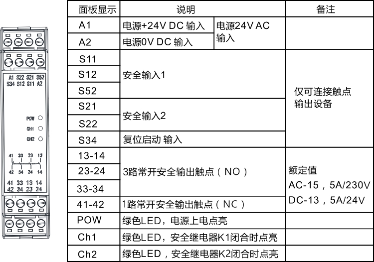 SRS-226-2N/P-3NO1NC是一款適用于具有開關量的安全產品輸入,具有3路常開(NO)安全輸出觸點和1路常閉(NC)輔助輸出觸點的安全繼電器。它可選擇單/雙通道操作,手動/自動復位。