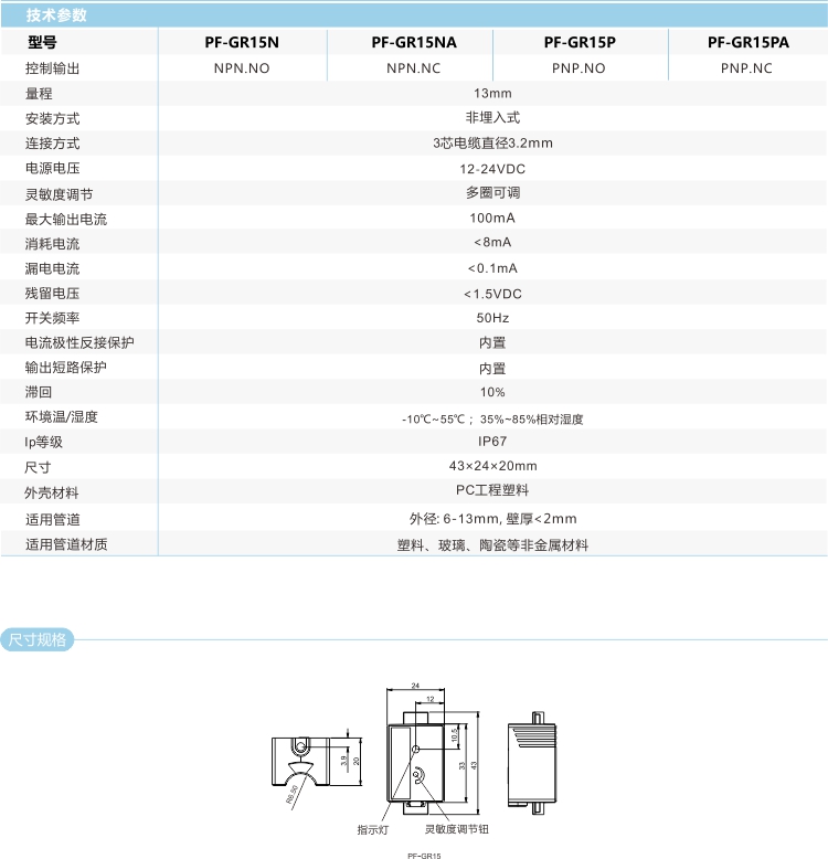 電容式液位傳感器靈敏度可調(diào),可以檢測(cè)不同成分的液體,也可以通過調(diào)整靈敏度解決少量液體掛壁引起的誤檢。