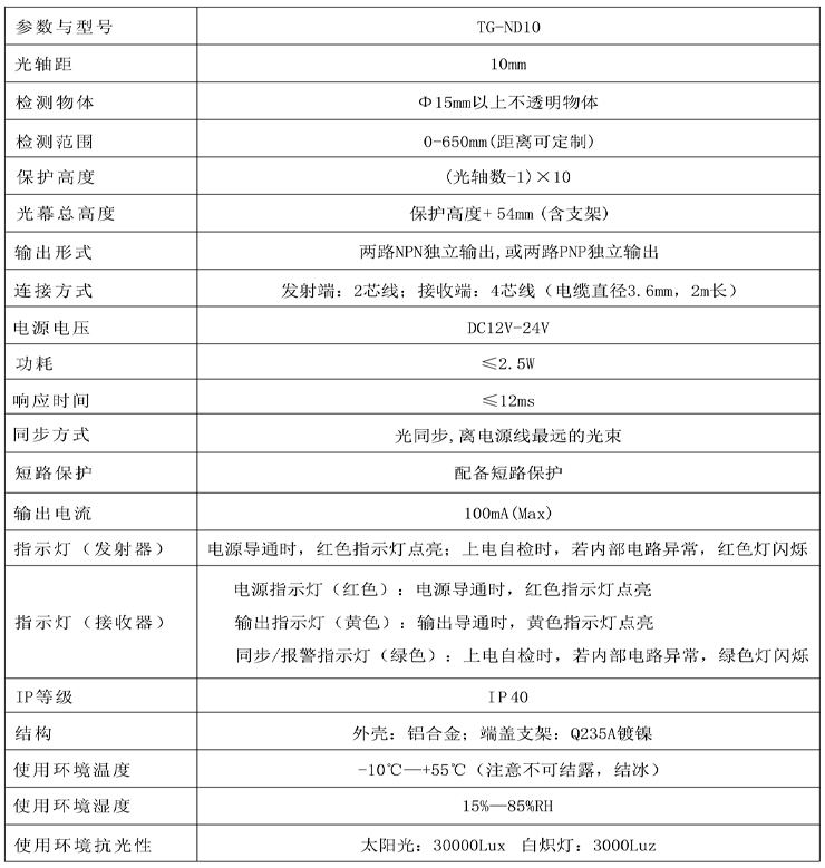 首頁 > 產(chǎn)品中心 >>傳 感 器 >> 安全光幕 >> 四級安全光幕超薄型TG-ND-10系列