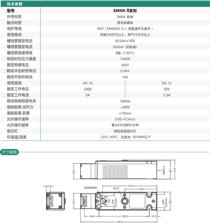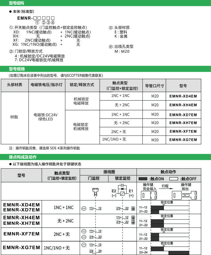 安全門開(kāi)關(guān) 電磁式 兩組觸點(diǎn) EMNR-X 系列