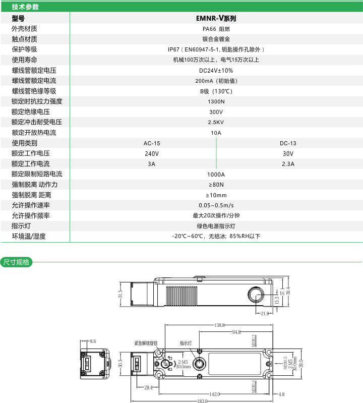首頁 > 產品中心 >>傳 感 器 >> 安全門開關 >> 安全門開關 電磁式 四組觸點 EMNR-V 系列